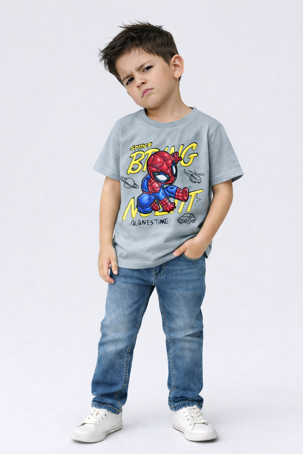 Let your little champion step into hero mode with the Action Hero Tee. Featuring a bold superhero graphic and vibrant comic-style design, this tee sparks imagination, confidence, and endless adventures. Perfect for active kids who love action, heroes, and playful style.