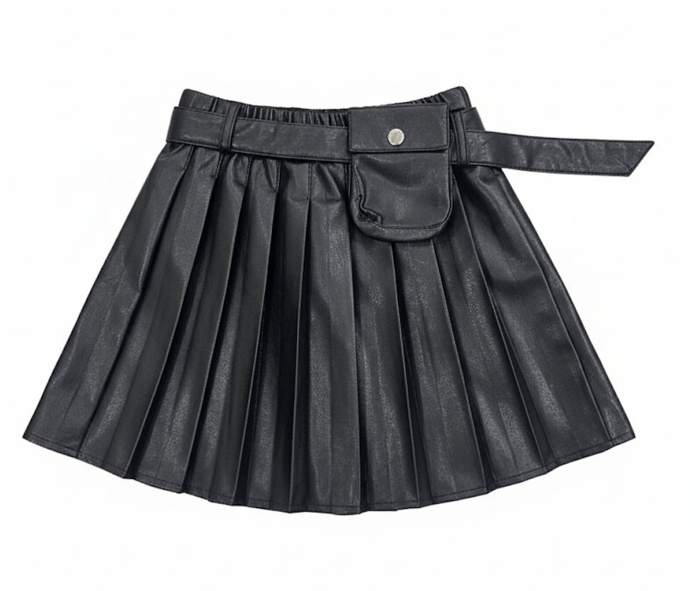 Command attention with the Power Pocket Skirt, where edgy style meets everyday comfort. Designed in a premium leather-finish fabric, this pleated skirt features a bold belted waistband and a stylish utility pocket detail, adding a modern street-luxury edge to your look.