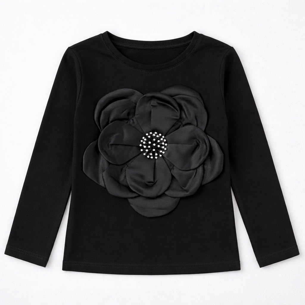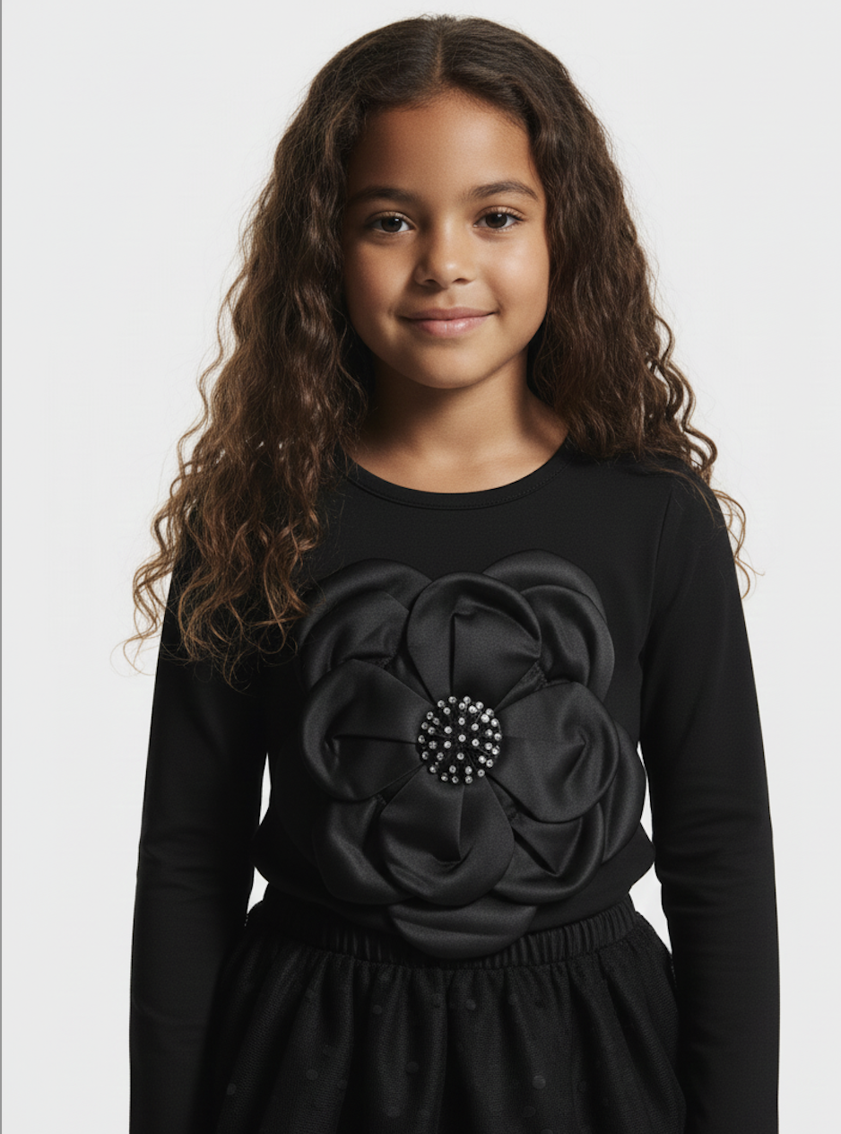 Crafted from soft, stretchable fabric, this top features a stunning 3D floral applique at the front, finished with delicate bead detailing at the center for a touch of sparkle.