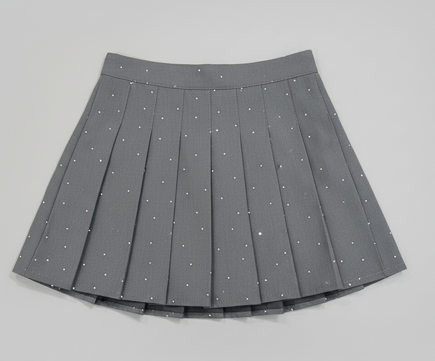 Subtle yet striking, the Bling Babe Stone Skirt – Grey is designed for effortless sparkle with everyday comfort. Crafted in a sophisticated grey tone, this pleated skirt is delicately adorned with shimmering silver stone embellishments, adding a refined touch of glam without being overpowering.