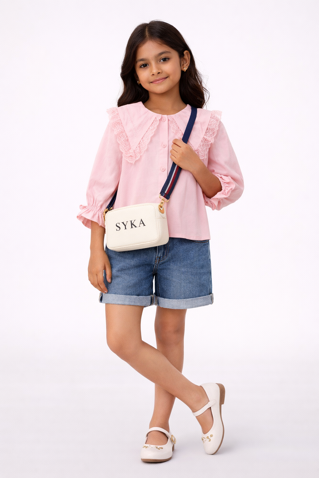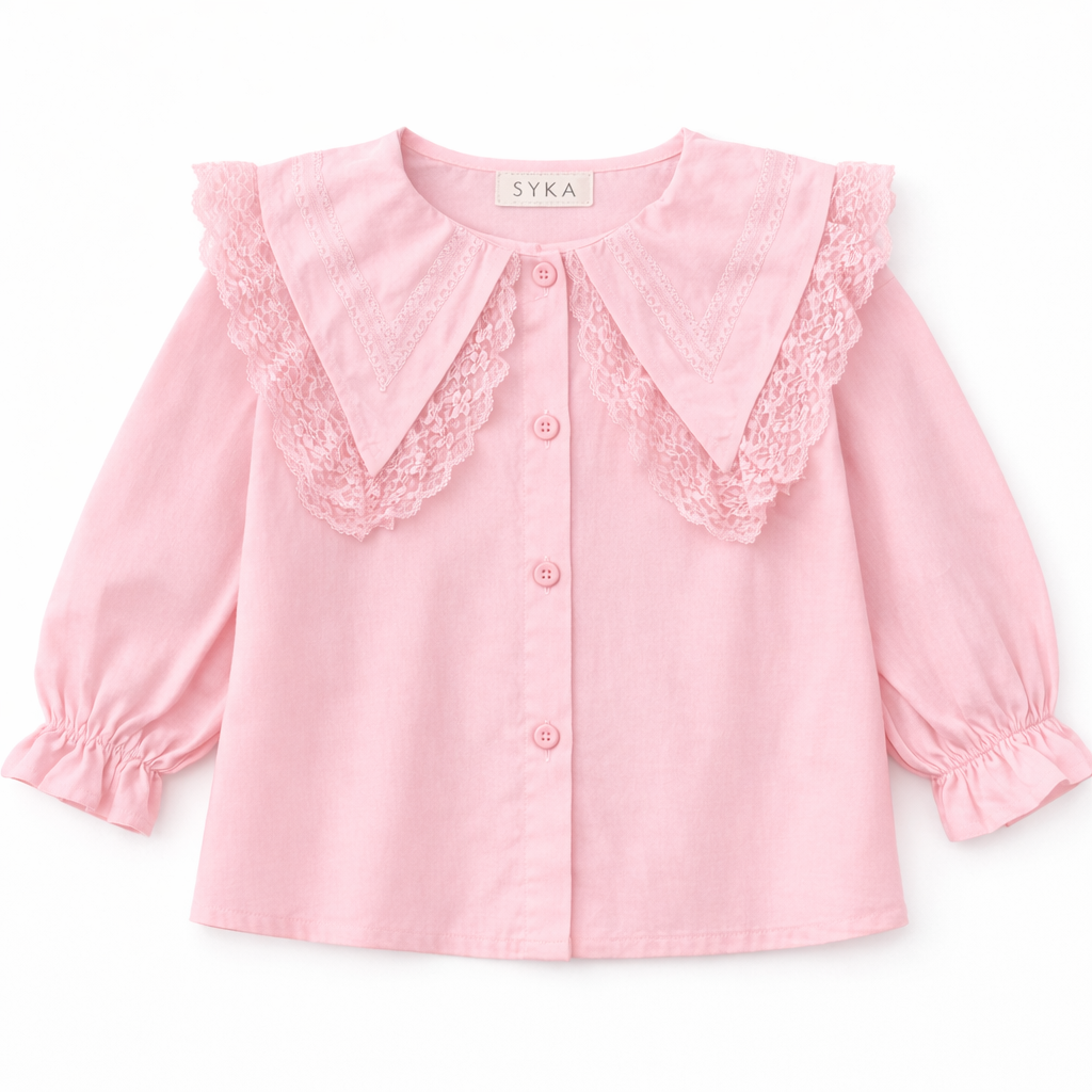 Add a touch of vintage charm to your little one’s wardrobe with the Blush Pink Lace Collar Top. Crafted in a soft pastel pink hue, this elegant top features a statement oversized collar highlighted with delicate lace detailing for a timeless, graceful look. The lightweight fabric and relaxed silhouette ensure all-day comfort, while the gently puffed sleeves add a sweet, classic finish. Perfect for festive occasions, family outings, or everyday elegance.