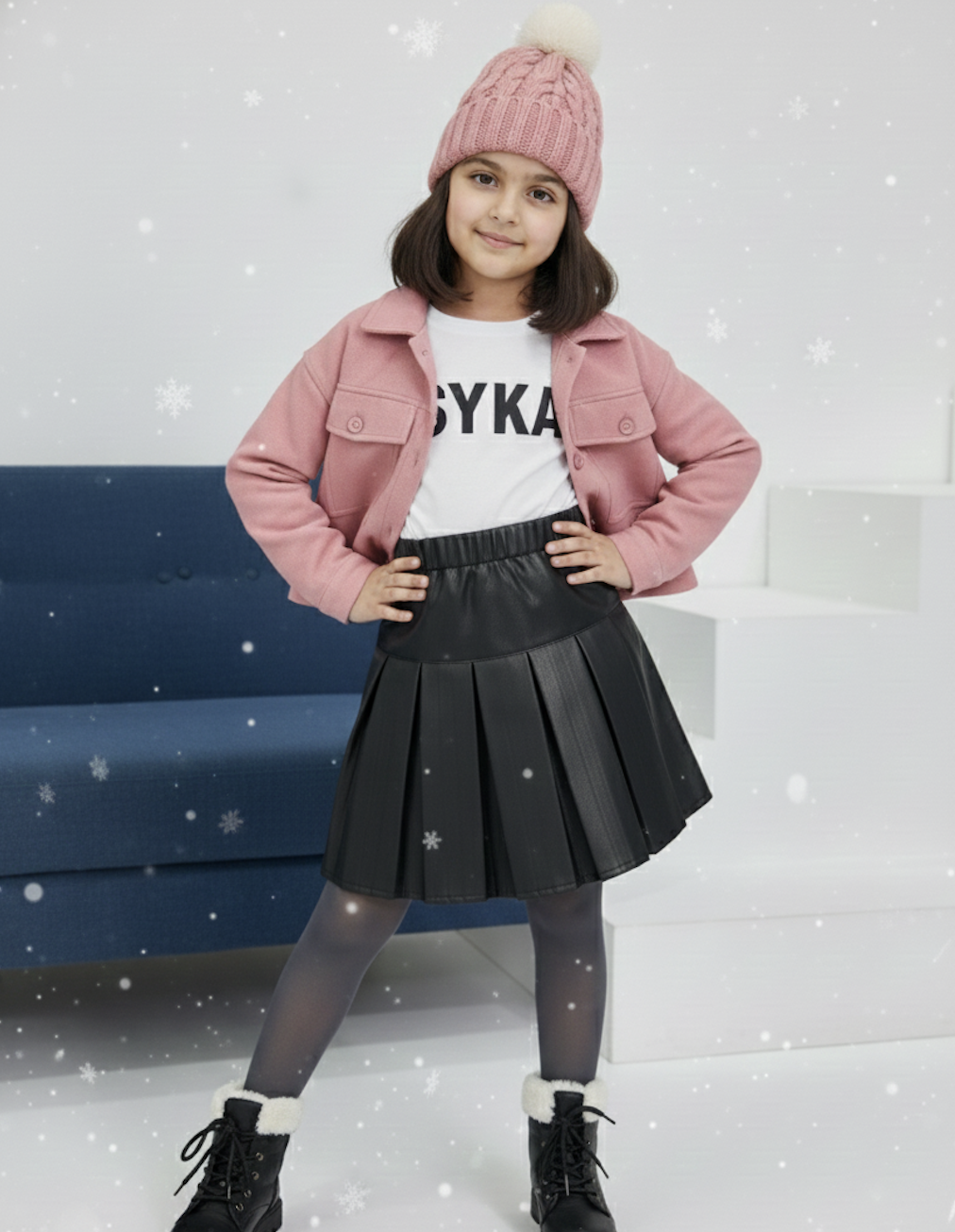 Turn heads with confidence in the Boss Babe Leather Skirt, designed for bold style with everyday comfort. Crafted in a premium leather-finish fabric, this skirt features sharp, structured pleats that create a powerful and stylish silhouette.
