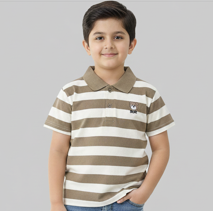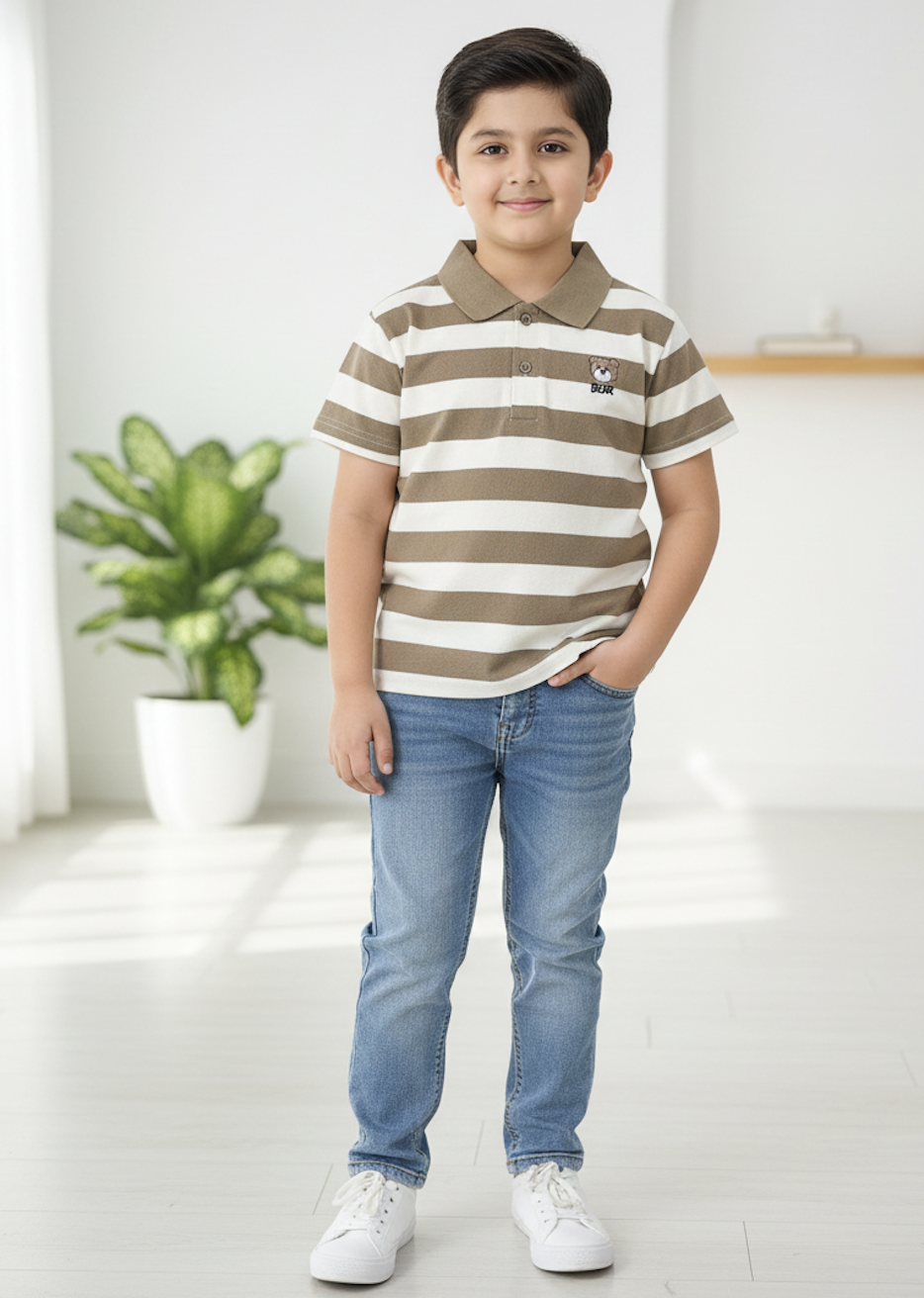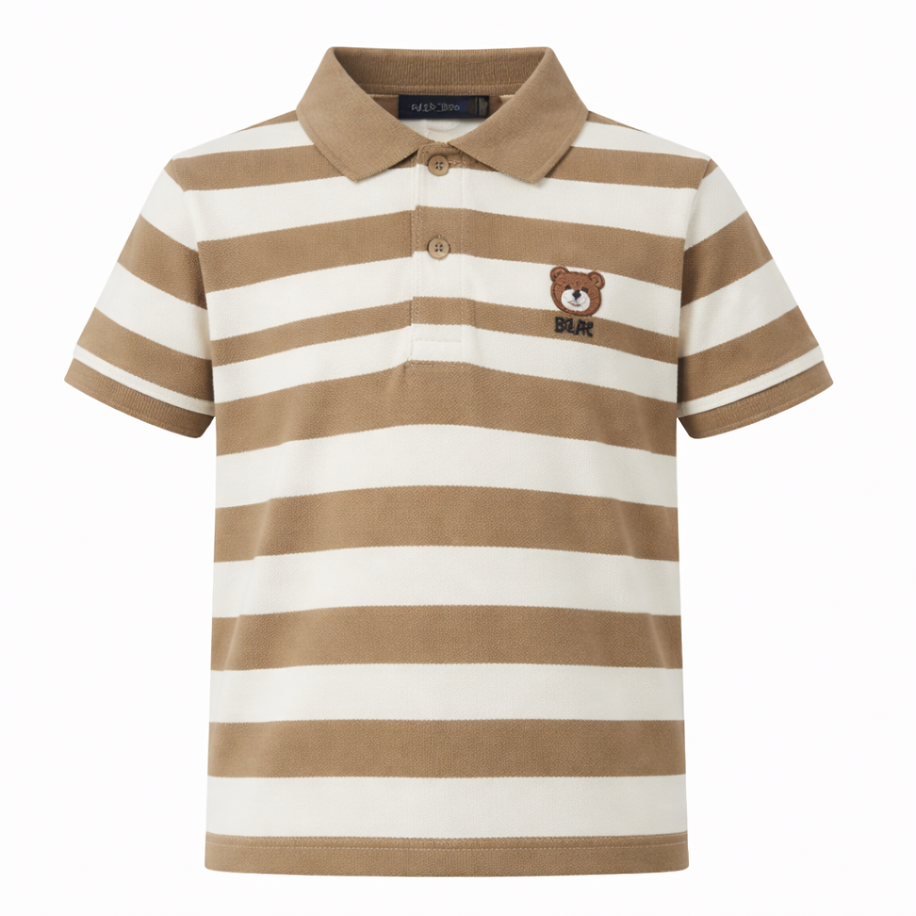 Designed with clean horizontal stripes and finished with an adorable bear embroidery, this polo tee blends playful style with a smart, polished look.