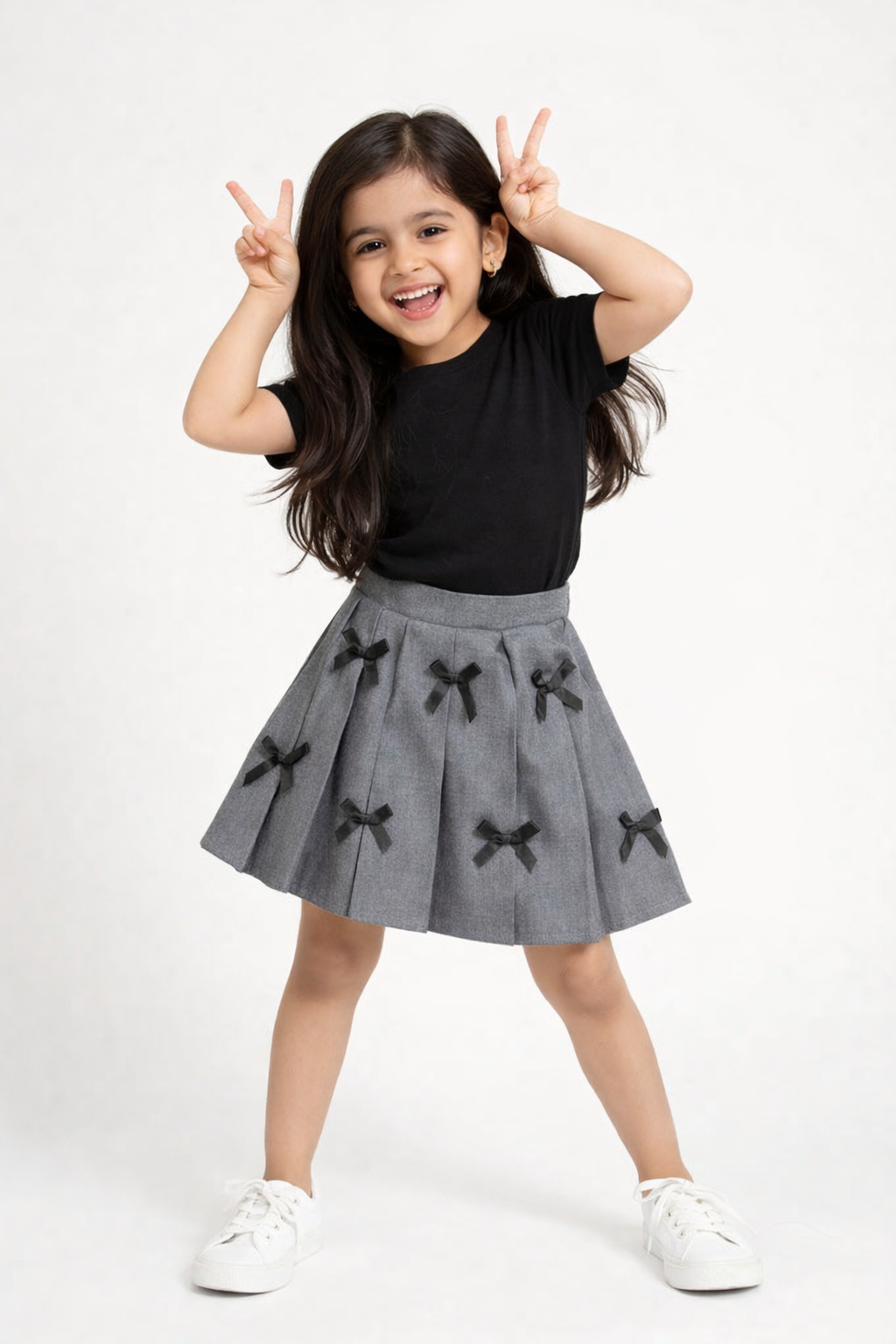 Add a touch of charm and cuteness to your little one’s outfit with the Mini Bow Magic Skirt. Designed in a classy grey tone and adorned with adorable bow accents, this skirt is the perfect blend of playful and elegant style.