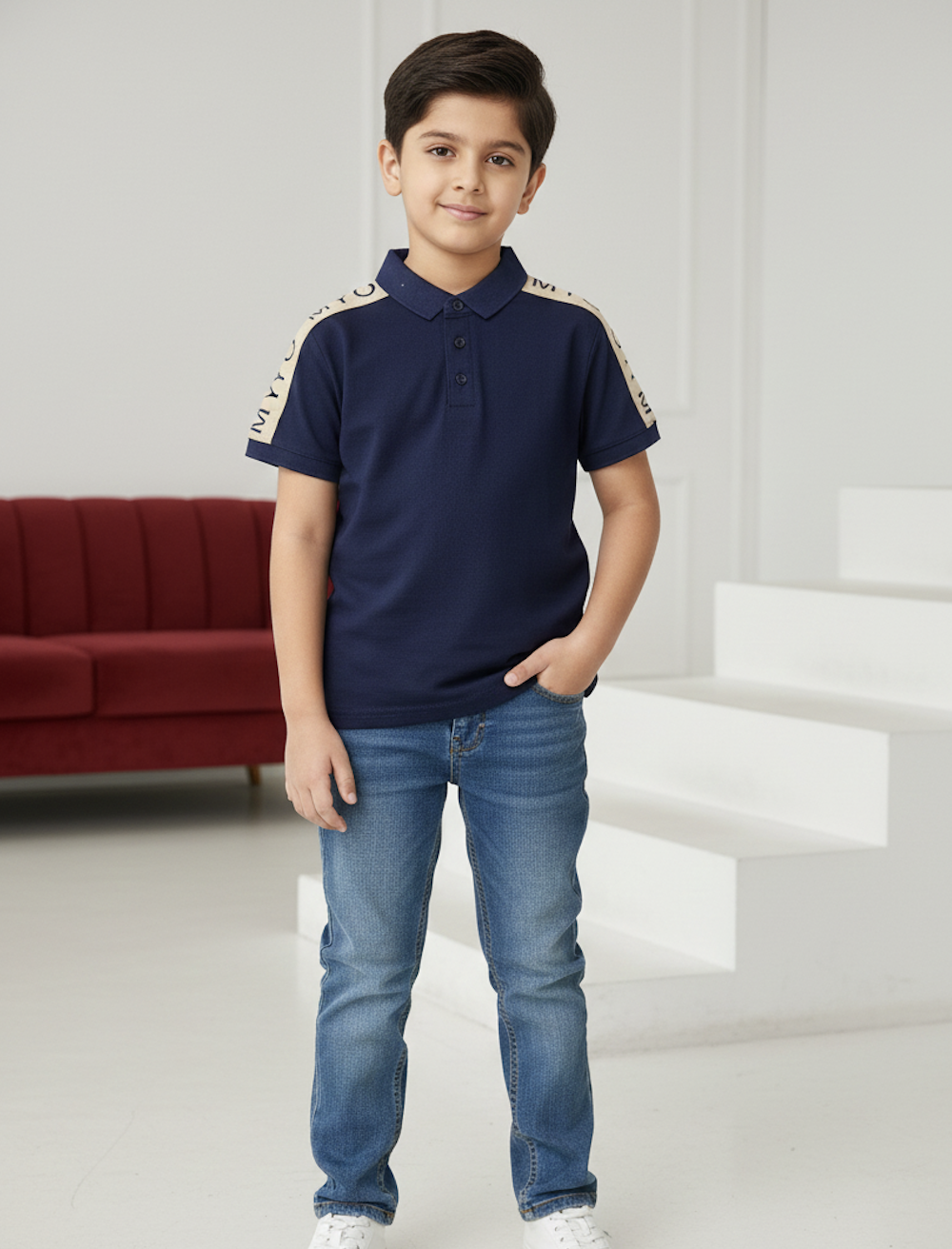 Designed for little boys with big style, the Mini Gentleman Polo Tee blends classic charm with everyday comfort.