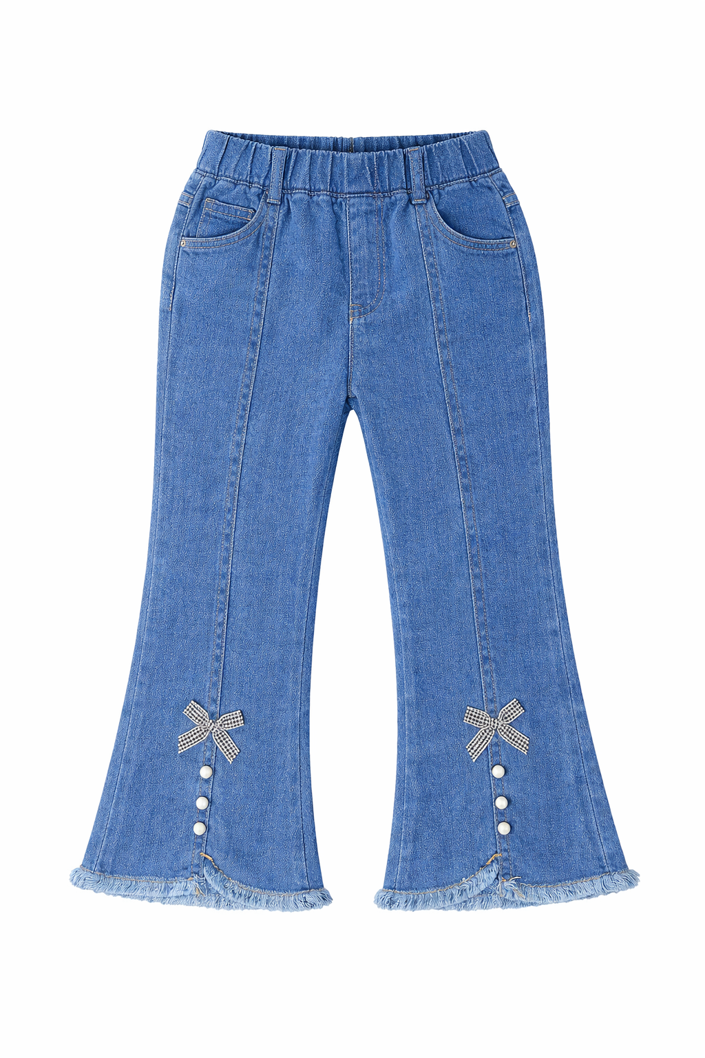 Blending comfort with chic design, Pearl Bow Fringe Denim is a must-have for kids who love fashionable details with everyday ease.