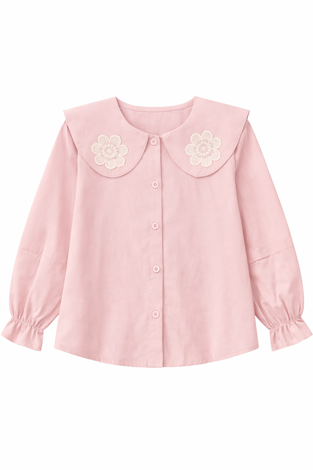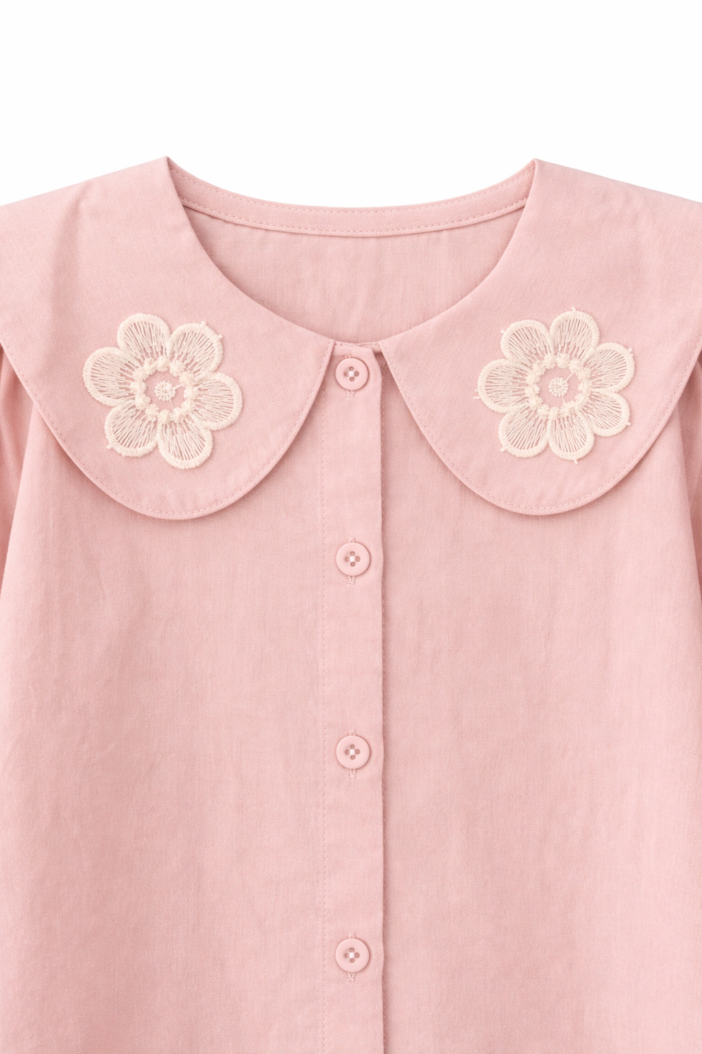 Collar: Oversized Peter Pan collar with daisy embroidery detailing