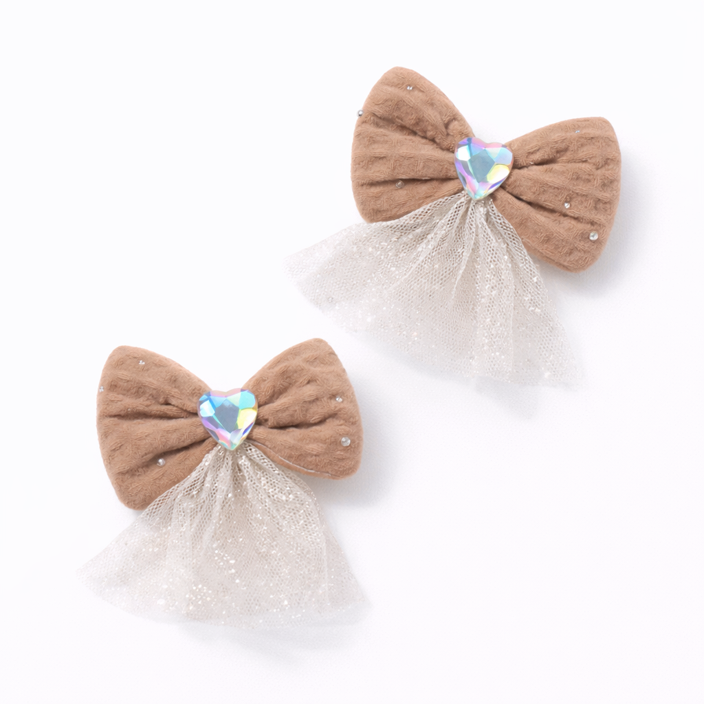 Add a touch of soft elegance to little hairstyles with the Velvet Charm Bow Pair by SYKA. Crafted from plush velvet-finish fabric and accented with a delicate heart embellishment and airy tulle detail, these bows bring charm and comfort together.