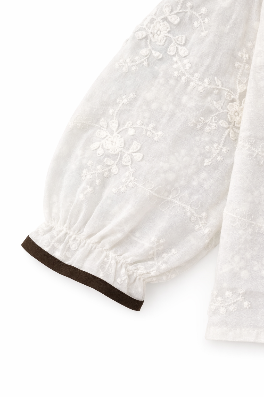 Sleeves: Full-length sleeves with elasticated cuffs for a subtle puffed silhouette.