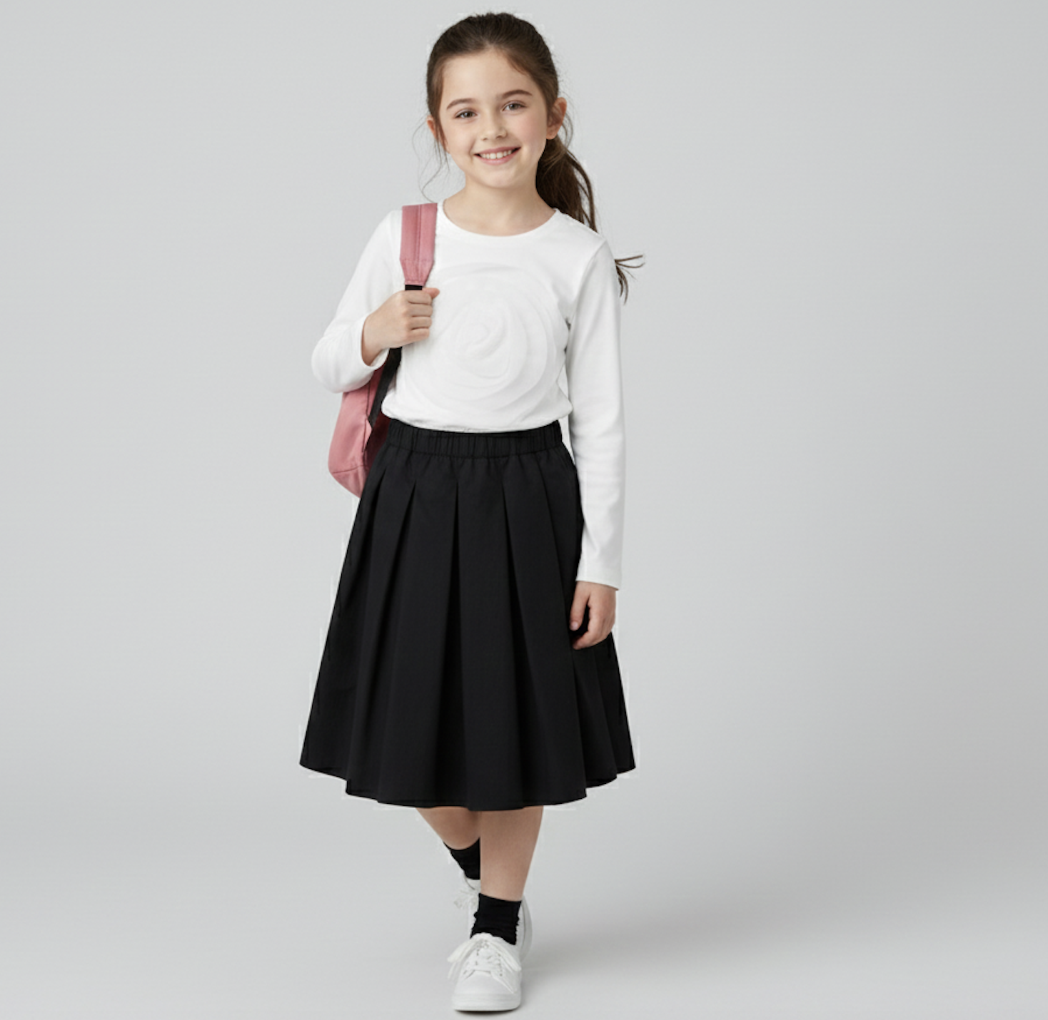 Delicate and timeless, this white stretch top features a subtle 3D floral appliqué that adds a soft statement touch without overpowering the look. Crafted from a smooth, stretchable fabric, it offers all-day comfort while keeping your little one stylish.